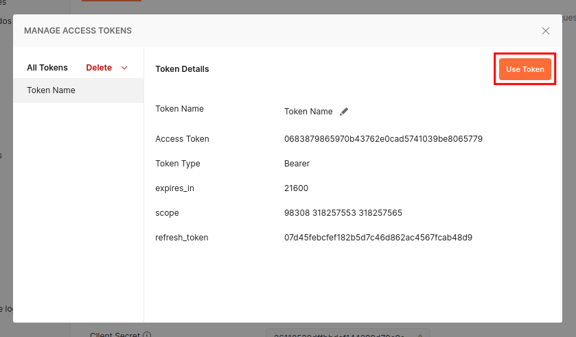 Certifique-se que o campo Type esteja selecionado como OAuth 2.0.Na seção "Configure New Token", altere os seguintes campos:
